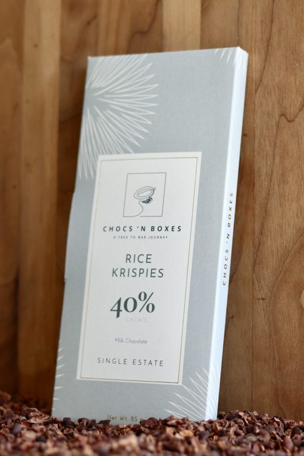 Indulge in the perfect combination of creamy milk chocolate and crispy rice krispies with our Milk Chocolate with Rice Krispies. Made with 40% organic cacao beans, our chocolate is sourced from our own farm harvest and blended with organic whole cow’s milk powder and organic cane sugar. The addition of crispy rice krispies adds a satisfying crunch to every bite, making this chocolate bar a delightful treat for any occasion. At 85g, it’s the perfect size to share or enjoy as a personal indulgence. Add it to your cart now and experience the delicious taste of our Milk Chocolate with Rice Krispies.