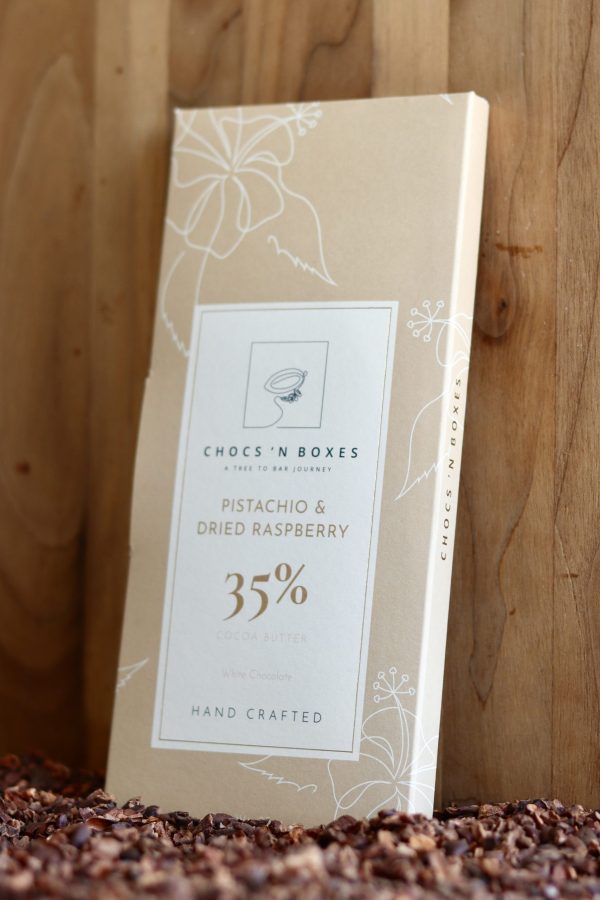 Experience a unique flavor symphony with our exquisite Raspberry with Pistachio and Dried Strawberry Chocolate. The creamy richness of white chocolate perfectly complements the zesty raspberry and sweet-tart dried strawberry pieces. Additionally, pistachios introduce a nutty crunch, making each bite unforgettable. This bar sets a new standard for gourmet chocolate, blending indulgence with artisanal craftsmanship. Hence, it satisfies not just the palate but also the soul. Our commitment to sustainability and quality shines through in this offering. Therefore, choosing this bar means indulging in luxury while supporting ethical practices.